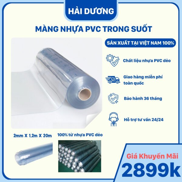 Màng nhựa PVC trong suốt 2mm là một giải pháp linh hoạt, hiệu quả và tiết kiệm. Phù hợp cho nhiều ứng dụng trong công nghiệp, xây dựng, nội thất và đời sống hàng ngày. Với những đặc tính nổi bật như độ bền cao, khả năng chống nước, chống hóa chất và dễ dàng gia công, sản phẩm này đang ngày càng được ưa chuộng trên thị trường. Nếu bạn đang tìm kiếm một vật liệu bền, đẹp và đa dụng, màng PVC trong suốt dày 2mm chắc chắn là một lựa chọn đáng cân nhắc.